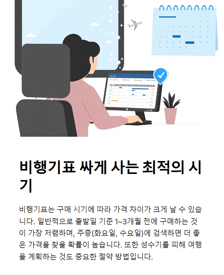 | 여행 시즌 | 최적의 구매 시기 | 추천 요일 |