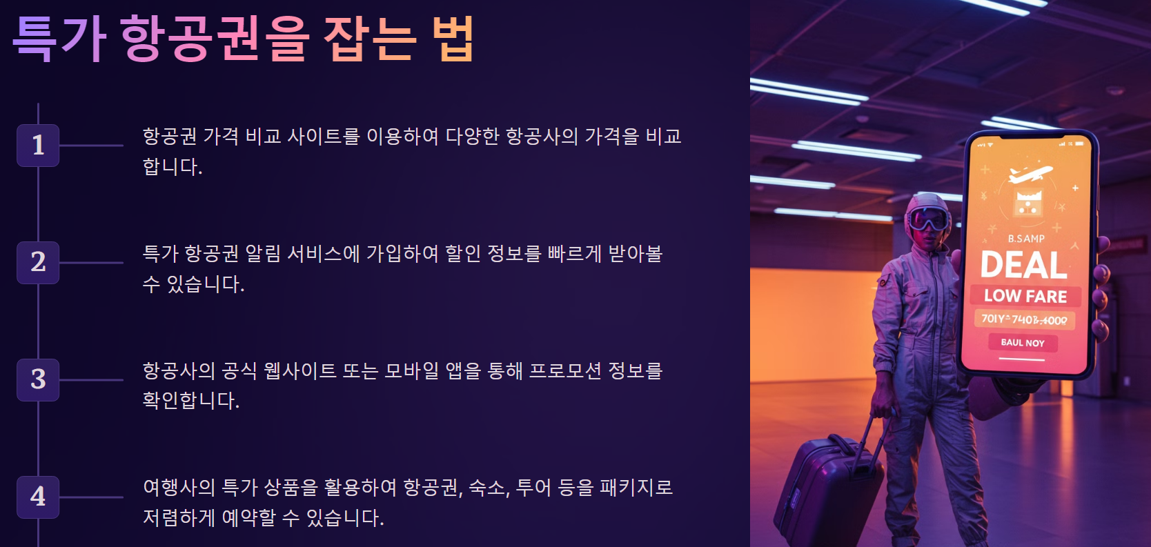 | 항공사 프로모션 | 이벤트 기간 중 가격 할인 |