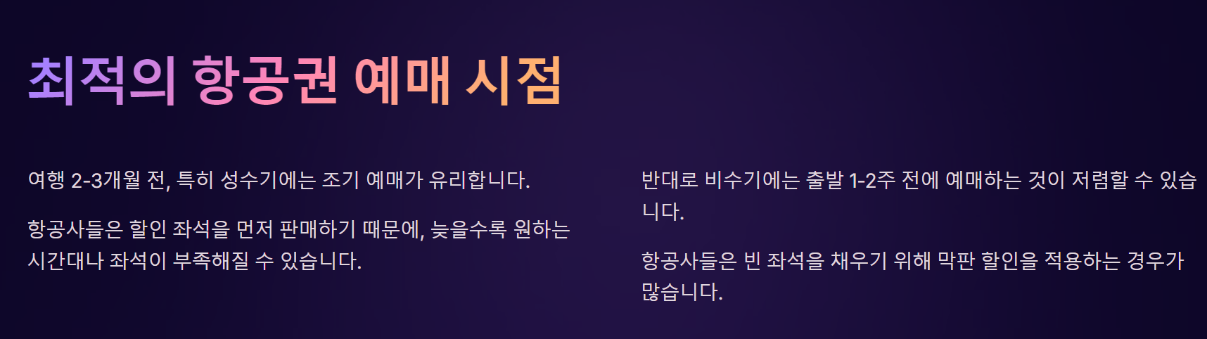 | 항공권 유형 | 최적의 예매 시점 | 주의 사항 |