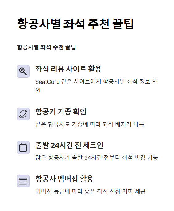 여행의 시작을 기분 좋게 만들고 싶다면, 좌석 선택은 필수 코스예요. 특히 자신이 중요하게 생각하는 요소가 무엇인지 먼저 체크하고 좌석을 선택하는 게 좋아요. ✍️