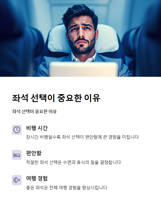 비행기 좌석은 단순한 위치의 문제가 아니에요. 장시간 앉아 있어야 하는 비행 환경에서, 어디에 앉느냐에 따라 피로감, 수면 질, 편의성까지 모두 달라져요. 특히 장거리 국제선의 경우 10시간 이상을 보내야 하니 좌석 선택은 '살아남기 위한 기술'이라고 해도 과언이 아니에요.