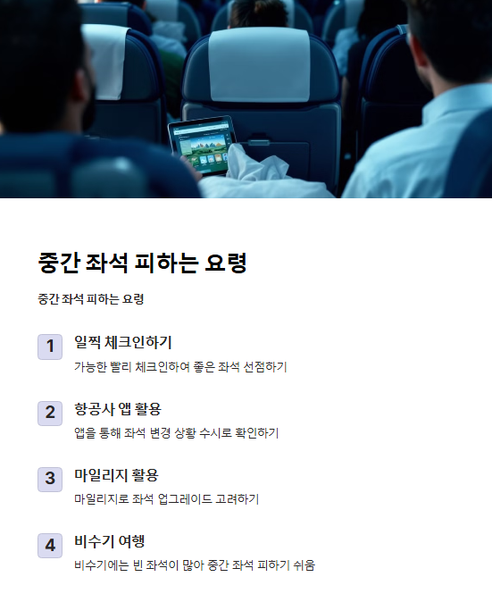 중간 좌석은 정말 피할 수 있다면 피하세요! 특히 키가 크거나 장거리 비행을 앞두고 있다면, 체크인 시간 알림을 미리 설정해서라도 창가나 복도 자리를 먼저 선점하는 걸 추천해요. 😤