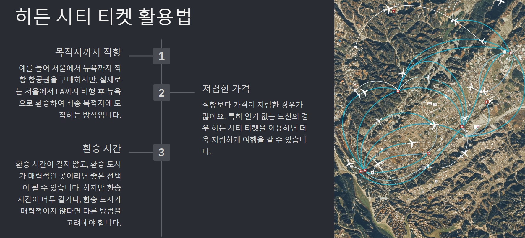 ‘히든 시티 티켓팅’은 목적지가 중간 경유지로 포함된 항공권을 구매하는 전략이에요. 예를 들어, 서울에서 뉴욕 직항이 너무 비싸다면 서울 → 뉴욕 → 보스턴 티켓을 구매하고, 뉴욕에서 내리는 방식이죠.