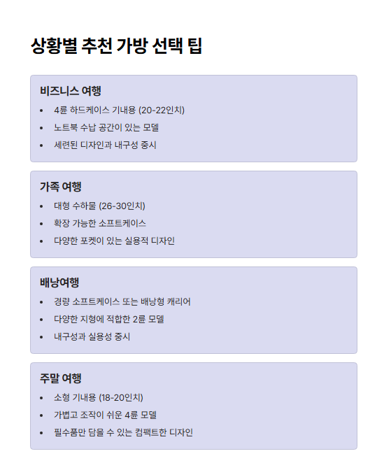 🎒 상황별 추천 캐리어 정리표