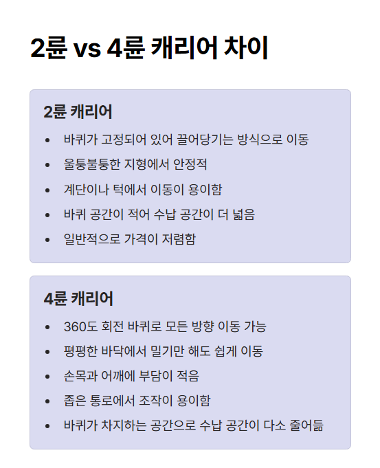 🛞 2륜 vs 4륜 캐리어 차이