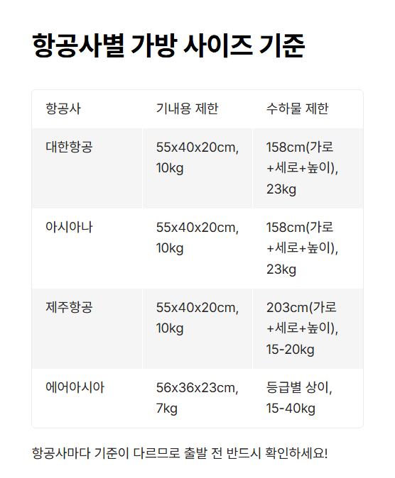 📏 항공사별 가방 사이즈 기준