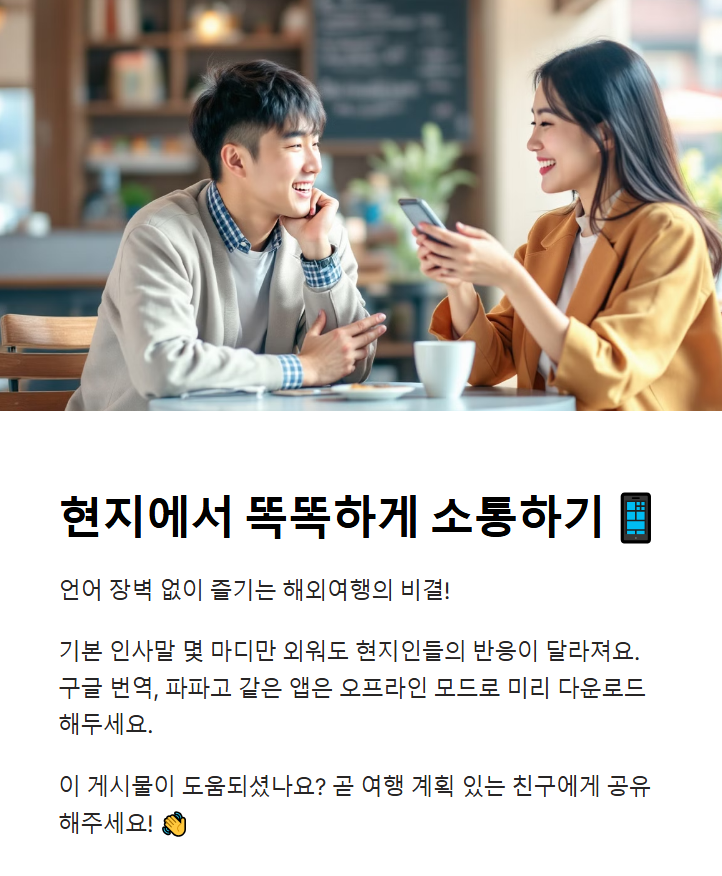 해외여행 중 언어가 가장 큰 장벽이 될 수 있어요. 하지만 요즘은 번역 앱을 잘 활용하면 큰 문제 없이 여행할 수 있어요! 😊