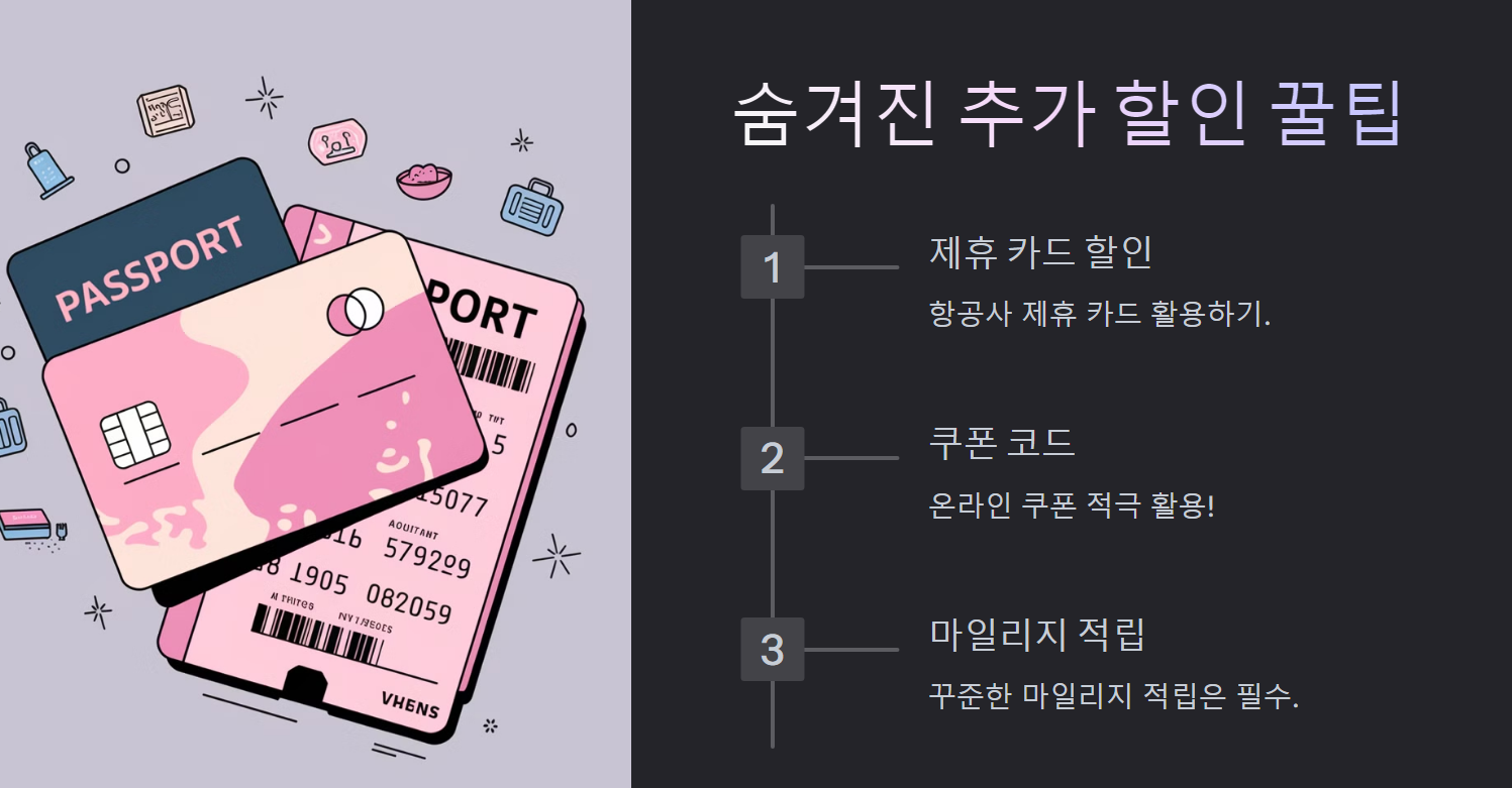 여러분이 모를 수도 있는 항공권 추가 할인 방법을 소개할게요. 사실, 조금만 신경 쓰면 더 저렴한 가격에 항공권을 구매할 수 있답니다!