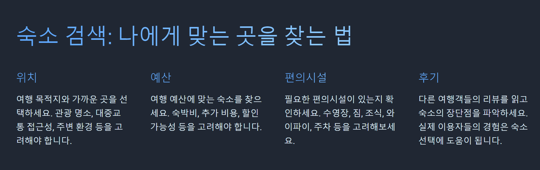 숙소 검색 시 고려해야 할 요소