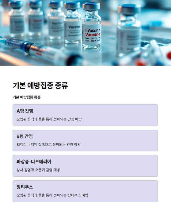 해외에 나갈 때 필수는 아니지만, 대부분의 나라에서 추천하는 '기본 예방접종'이 있어요. 어린 시절 접종한 백신이라도 효과가 오래 지속되지 않거나, 성인 시기에 추가 접종이 필요한 경우가 많아요.