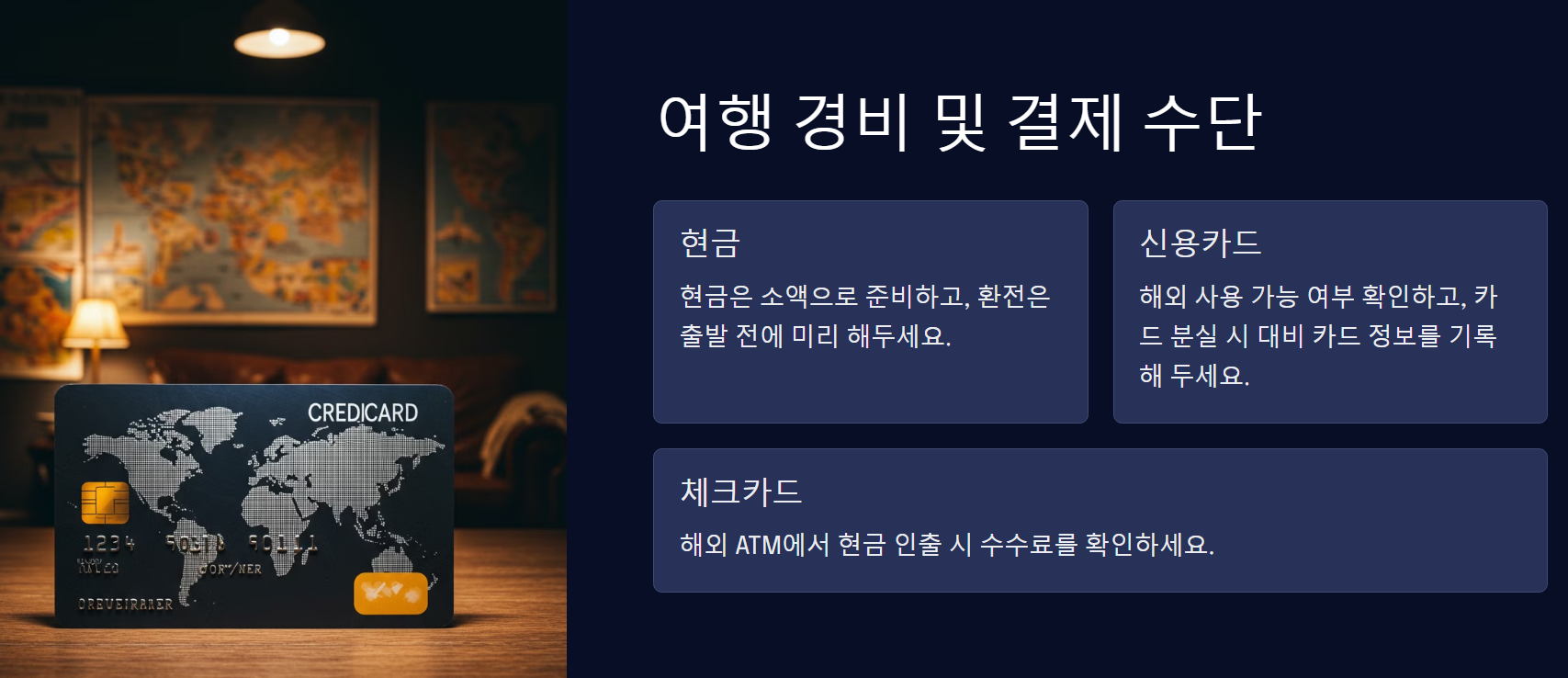 해외에서는 돌발 상황이 발생할 수 있기 때문에 대비하는 것이 중요해요. 예상치 못한 사고나 건강 문제, 결제 수단 문제까지 모두 고려해서 준비하면 여행이 훨씬 즐거워질 거예요!