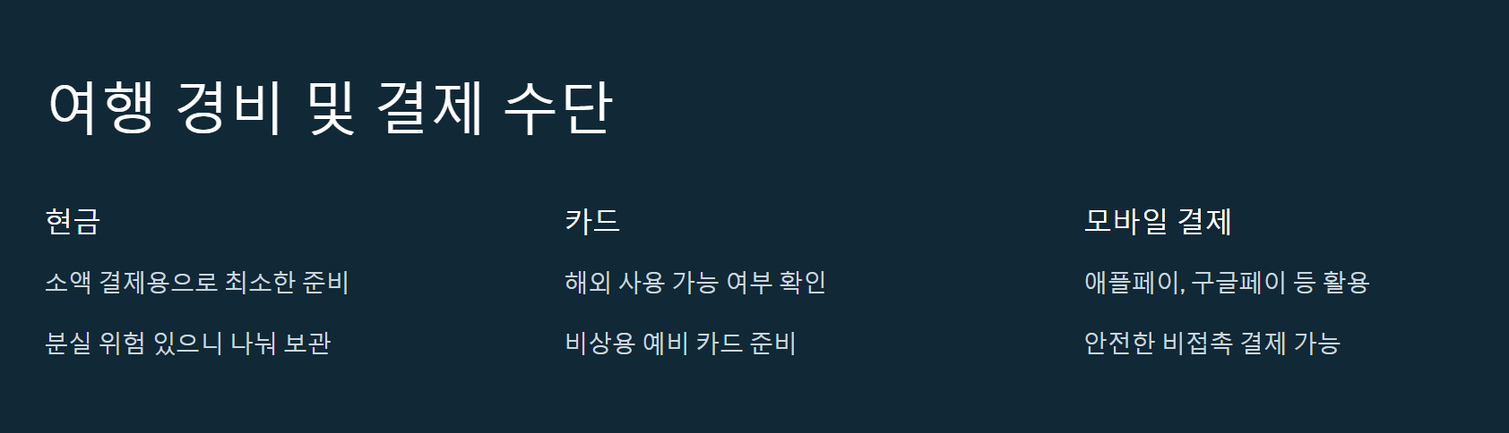 여행 경비 및 결제 수단