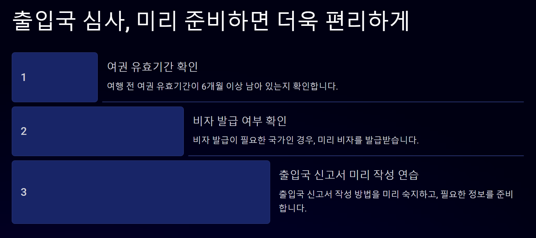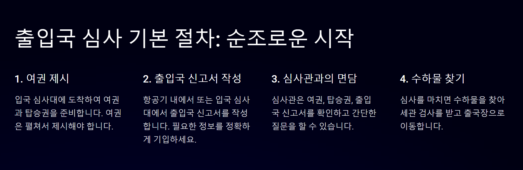 출입국 심사는 긴장할 필요 없이 미리 준비하고 차분하게 대응하면 문제없이 통과할 수 있어요. 위의 실수를 피하면 심사 시간을 단축하는 데 큰 도움이 돼요.