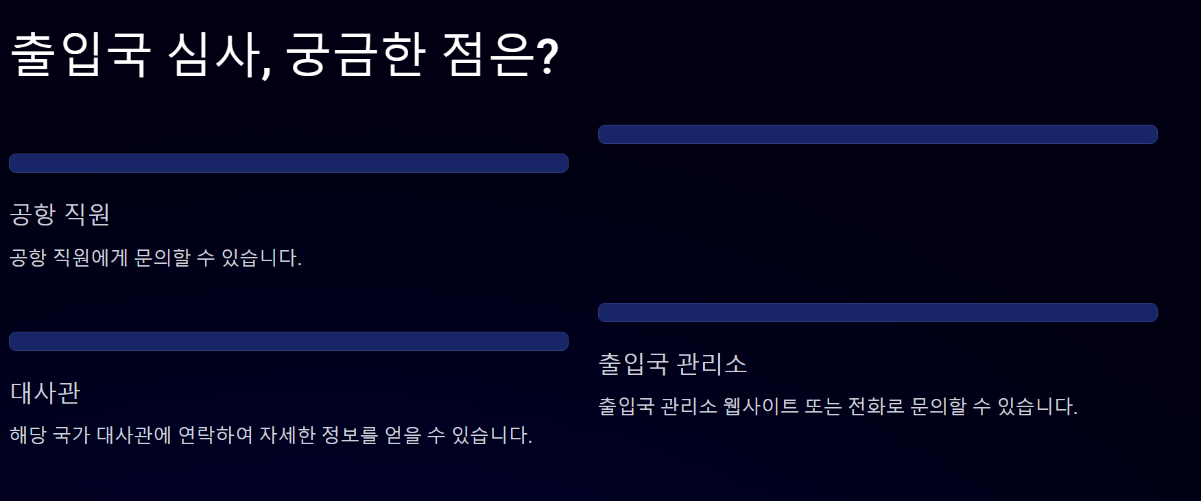 | 입국 목적 애매한 답변 | 심사관의 의심을 살 가능성 있음 | 단순하고 명확하게 답변 |