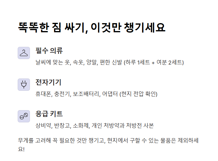 짐을 가볍게 싸는 것이 여행의 시작이에요! 🧳