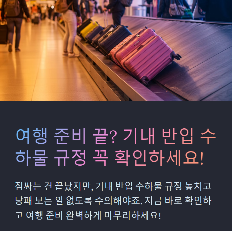 💡 결론: 기내 반입 수하물은 무게 & 크기 제한이 엄격하니 반드시 확인하세요! 🛫 그렇다면, 반입 가능한 물품과 금지된 물품은 무엇일까요? ✅🚫