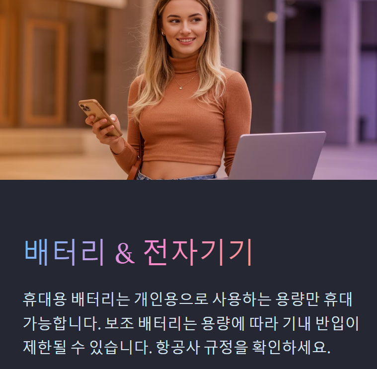 - ⚠️ 위탁 수하물에 보조배터리 넣으면 안 돼요! → 반드시 기내 반입만 가능