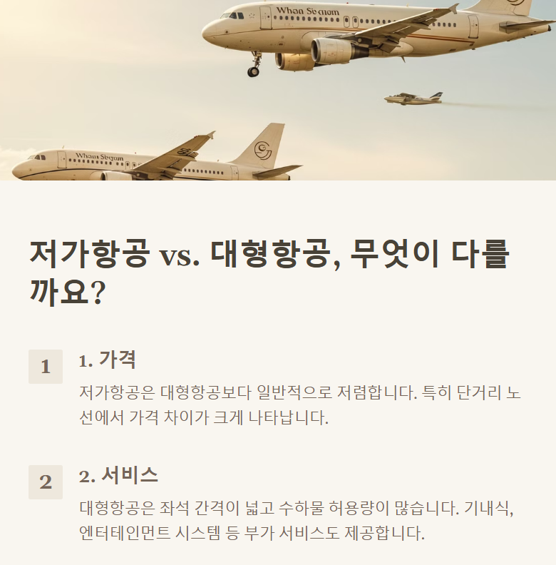 🧐 저가항공과 대형항공, 누가 이용하면 좋을까?