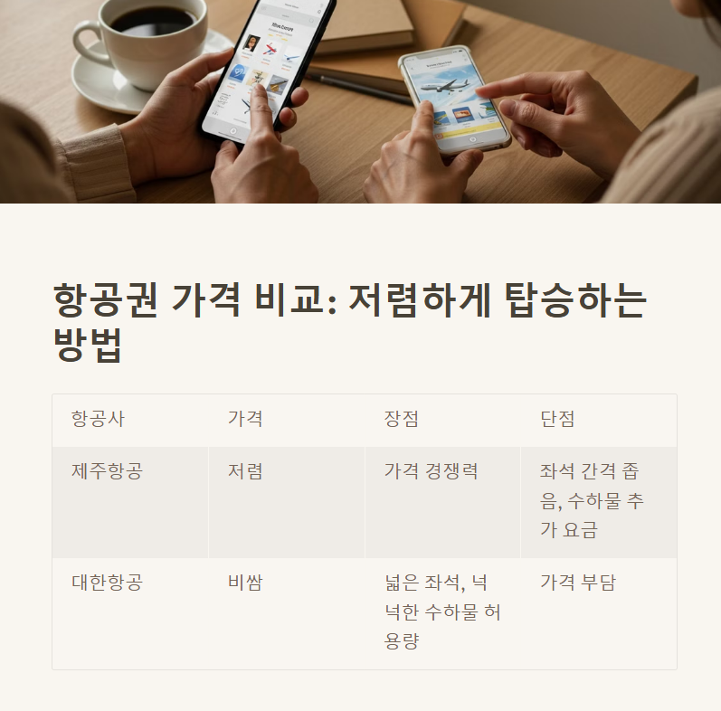 - 🛄 수하물 포함 여부 → 대형항공은 무료 수하물 포함, 저가항공은 유료 추가 요금 발생.