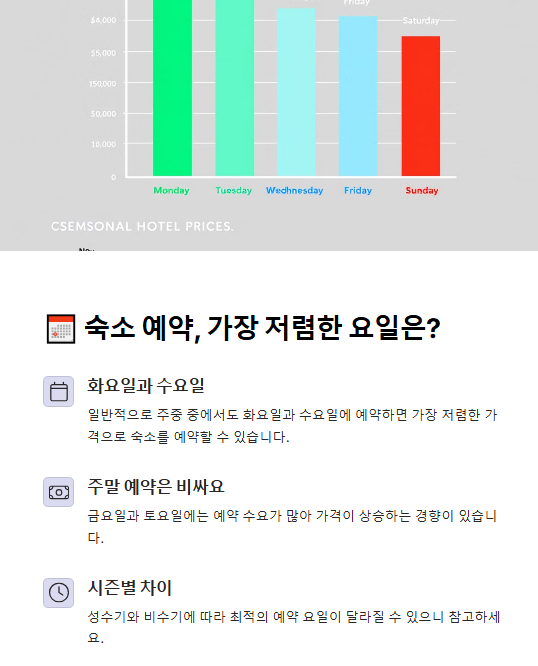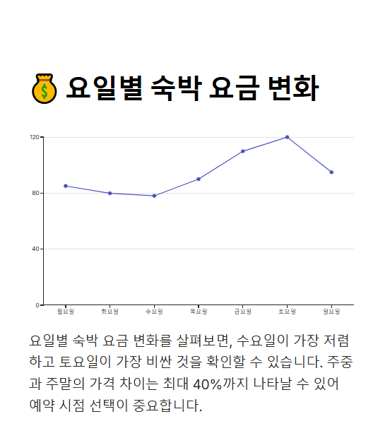 - ✅ 월요일~수요일에 예약하면 가장 저렴하게 숙소를 잡을 수 있음!