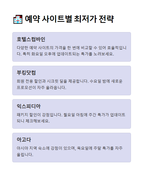 | 예약 사이트 | 특징 | 최저가 전략 |