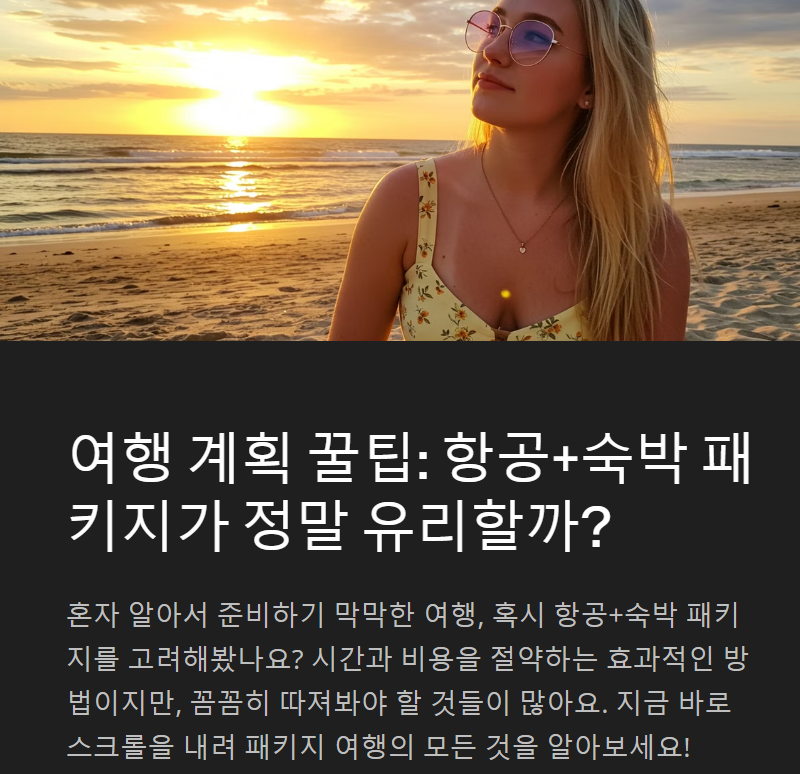 - 🛫 항공사 공식 홈페이지 패키지 확인하기 → 대한항공, 아시아나항공 등 항공사별 패키지 상품이 따로 있음