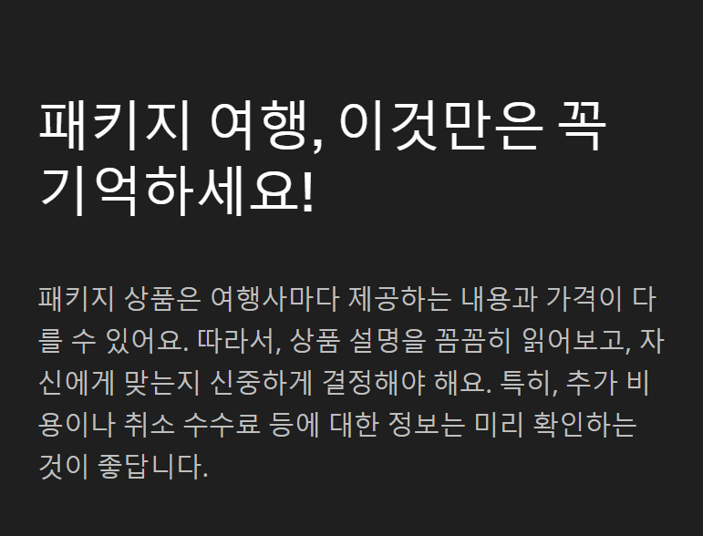 - ❌ 항공권 변경이 어려움 → 패키지 항공권은 변경 및 환불이 제한되는 경우가 많음