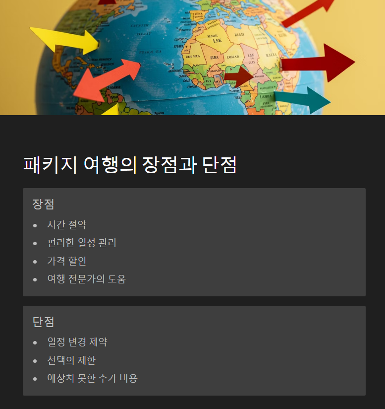 - 🕒 일정을 자유롭게 조정하고 싶을 때 → 패키지는 일정이 고정되어 있어 여행 중 변경이 어렵거나 추가 비용이 발생할 수 있음.
