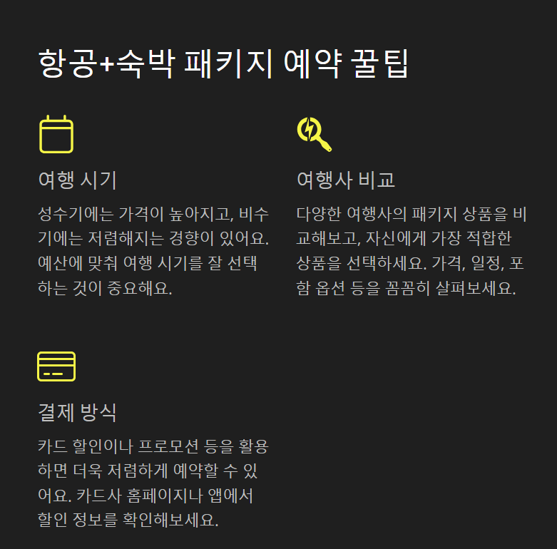 그렇다면, 패키지를 예약할 때 더 저렴하게 예약하는 꿀팁은 무엇일까요? 🛎️