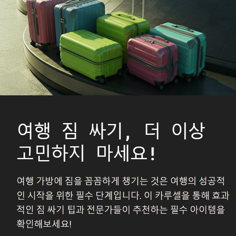 💡 결론: 필수템을 챙기되, 여행 스타일에 맞춰 필요한 물건을 추가하면 더 편리한 여행이 돼요! ✈️ 그렇다면, 공간을 절약하면서 짐을 싸는 노하우도 알아볼까요? 🧳