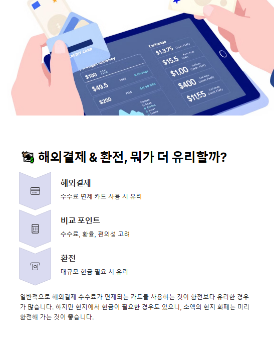 - ✅ 해외결제 수수료 0% 카드가 있다면, 카드 결제가 더 유리!