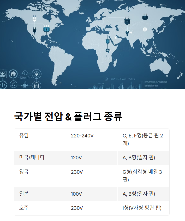 📌 주요 국가별 전압 & 플러그 규격