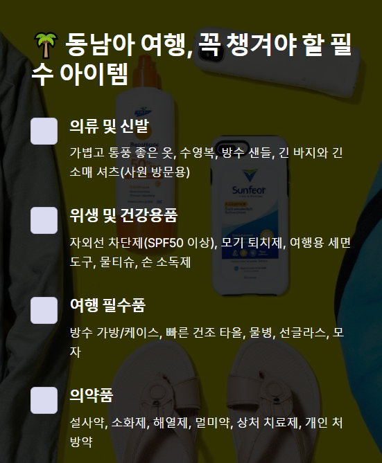 🌴 동남아 여행, 꼭 챙겨야 할 필수 아이템