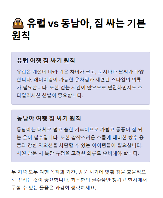 📌 유럽 vs 동남아, 짐 싸기 핵심 차이점