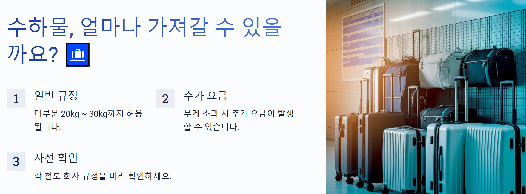 📌 이제 기차 이용 꿀팁과 수하물 반입 규정을 살펴볼까요? 🚆