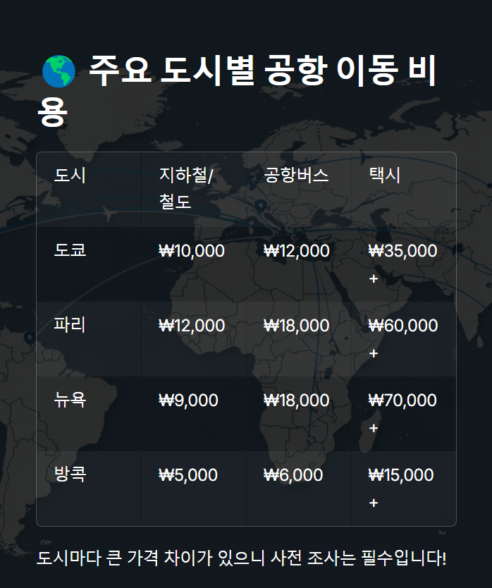 📌 세계 주요 도시 공항 교통비 비교