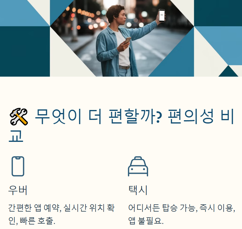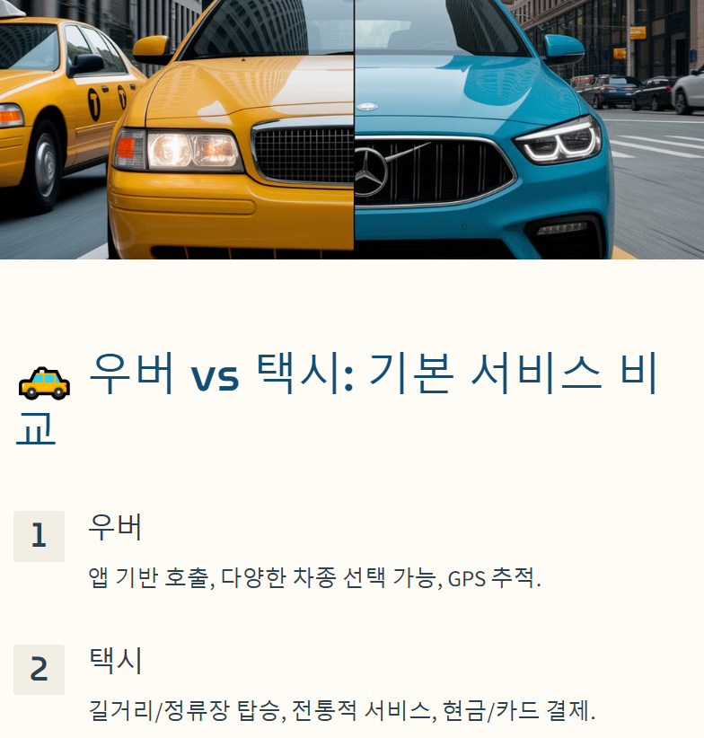 📌 우버(Uber) vs 택시(Taxi) 비교표