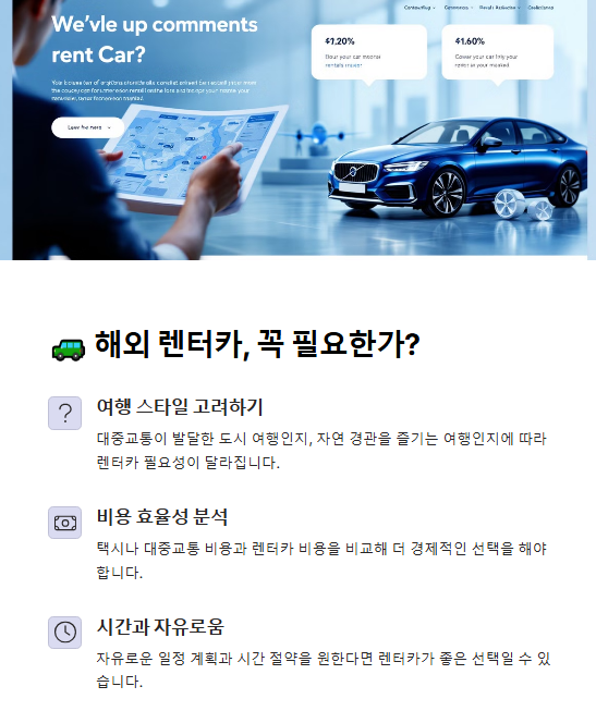 "해외여행에서 렌터카를 빌릴까 말까 고민돼요!" 🤔 렌터카가 필수인 여행지가 있고, 대중교통이 더 편리한 곳도 있어요. ✅ 지금부터 해외 렌터카가 필요한 경우 & 필요 없는 경우를 정리해볼게요!