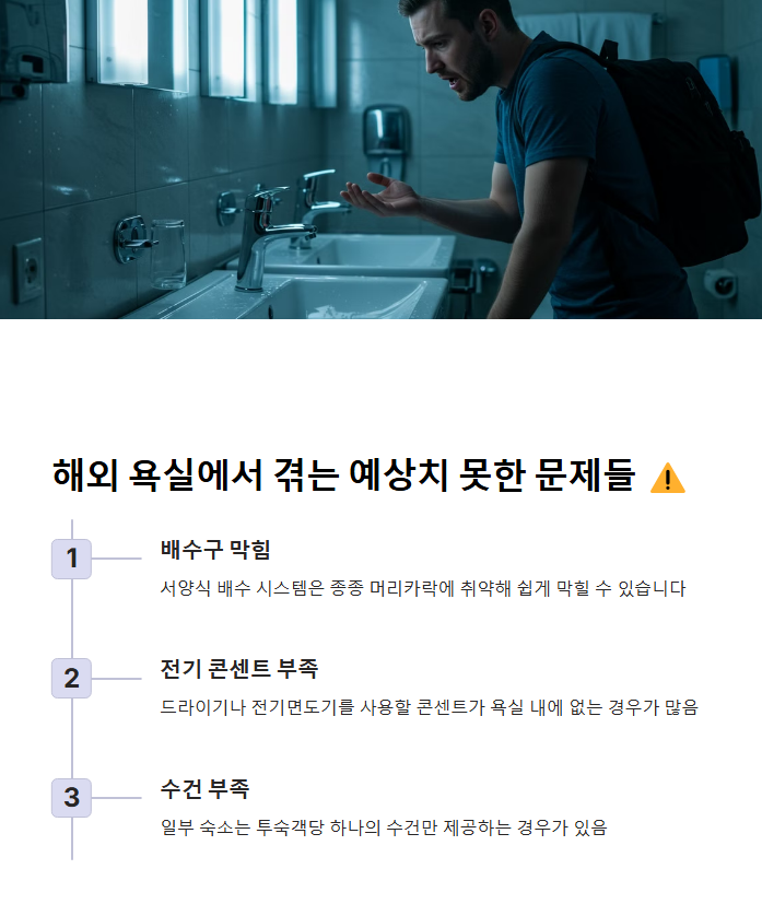 📌 해외 숙소 욕실에서 흔히 겪는 불편함