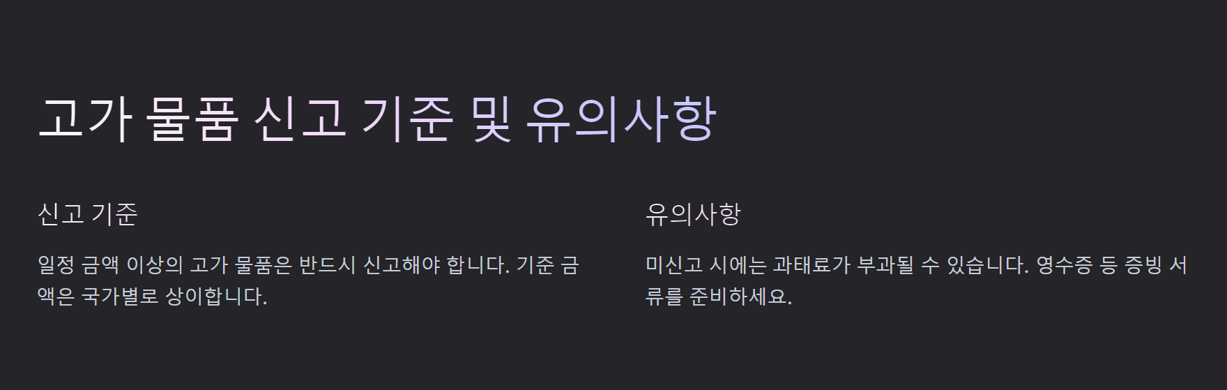 해외에서 구매한 물품 중 일정 금액 이상이면 반드시 세관 신고를 해야 해요. 신고 기준을 초과할 경우 세금이 부과되므로 주의해야 해요.